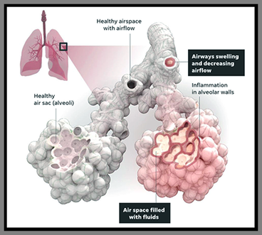 Restricting oxygen to the bloodstream deprives other major organs of oxygen including the liver, kidney and brain. In a small number of severe cases that can develop into acute respiratory distress syndrome (ARDS), which requires a patient be placed on a ventilator to supply oxygen.