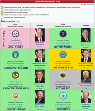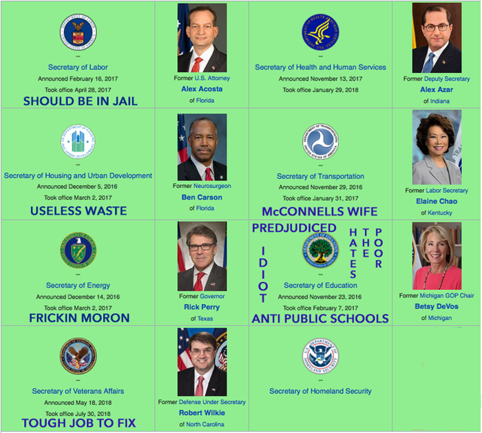 Now we have more than half the Cabinet leaders and Secretaries of Departments missing or quit, got fired or scared of hanging around a madman. Careers have been bashed, and those who got out early were the smartest, they just leave it off their resume.