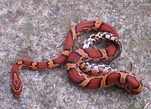 THE CORN SNAKE (Pantherophis guttatus) is a North American species of rat snake that subdues its small prey by constriction. It is found throughout the southeastern and central United States. Their docile nature, reluctance to bite, moderate adult size, attractive pattern, and comparatively simple care make them commonly kept pet snakes.