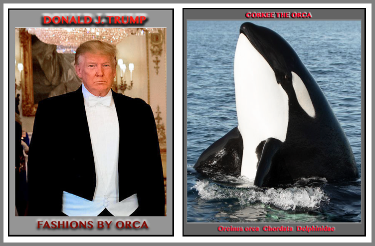 EDITOR: The President wore white tails to the white tie event, but his tuxedo, from head to toe, was lambasted for being remarkably ill-fitted. He truly looks like an ORCA… Orcas are the top of the food chain in the Ocean. T-RUMP is the bottom of the barrel in real time.