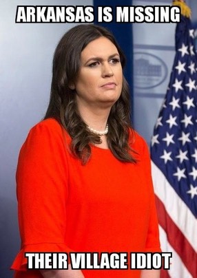 I had prayed she would burst into flames because of the shame and pain she caused my fellow compatriots who had to endure that overdose of frickin lies and stupid answers in the press room. Let her go back to her demented father Mike Huckabee and his bullsh*t fake Religious Commentary lies and they can sing KuBaYa together.