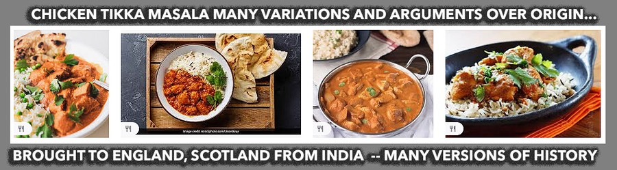Tikka Masala — British dish that combines tikka (boneless Tandoor grilled chicken) with masala — tomatoes and onions cooked with spices.