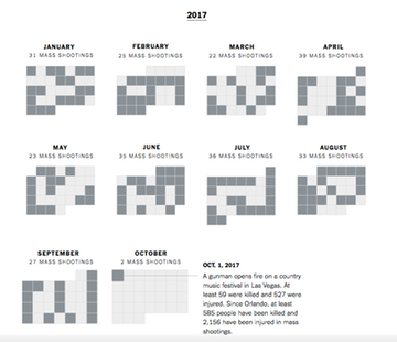 • 14 February: Marjory Stoneman Douglas High School, Parkland, Florida – A 19-year-old former student opened fire with a semi-automatic rifle, killing 17 and injuring 14.