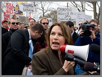 Bachman also shares Sarah’s love of God, as long as it is her God, country, her country and her spiritual thinking. All others need not apply. Left winger, right winger, nope Church and State winger with a lot of thumping, yes.
