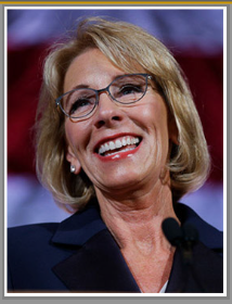 DeVos is a passionate supporter of school choice, which works to give all children, especially minorities, the opportunity for a better education.   ( Minorities,  she has never even been in a public school, what does she know about minorities?)  Democrats have been almost unanimous and unwavering in opposition to school choice, in part because they receive millions of dollars in campaign contributions from teachers unions who are firmly opposed to parental choice in education.  Â