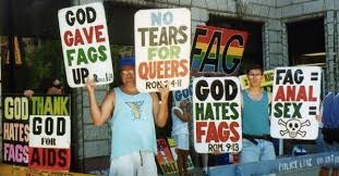 “Filthy sodomites crave legitimacy as dogs eating their own vomit and sows wallowing in their own feces crave unconditional love.” Author: Westboro Baptist Church. Certainly the kind of Church you would want to bring your kids up in.