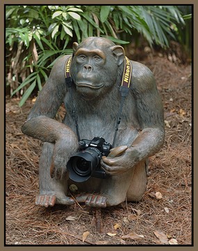 "Just Chimping Around" came about after a day at Busch Gardens watching these almost human close cousins of ours living their lives in a well designed habitat. There is something about Chimpanzee's, that draws my attention. Maybe it's because I see CHIMPS, which is the common name for the two species of Chimpanzees doing things that look human and sometimes I see things that humans do that makes them look like Chimps. They belong to the genus PAN and the common Chimp is called a PAN TROGLODYTE. Now you know what that means when you call your best friend a knuckle dragging Troglodyte! All these years you thought it was a creature from a fairy tale. They come from West and Central Africa.
