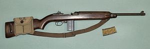 The M16 rifle, officially designated Rifle, Caliber 5.56 mm, M16, is a United States military adaptation of the ArmaLite AR-15 rifle. The original M16 was a select-fire, 5.56×45mm rifle with a 20-round magazine. In 1964, the M16 entered American military service and following year was deployed for jungle warfare operations during the Vietnam War. In 1969, the M16A1 replaced the M14 rifle to become the U.S. military's standard service rifle. The M16A1 improvements include a bolt-assist, chrome plated bore and a new 30-round magazine.