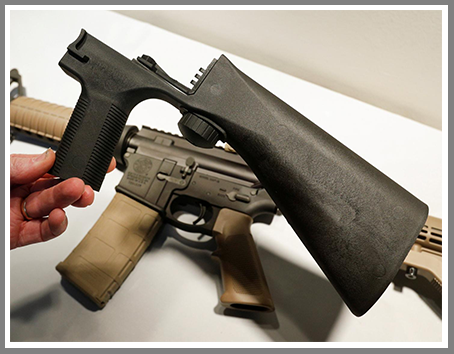Both the rifle and handgun Hodgkinson was carrying were purchased legally through federal firearms licenses, the FBI said. The rifle was modified to accept a detachable magazine and the original stock was replaced with a folding stock.Solid conventional plastic stocks are also available. (see photos)