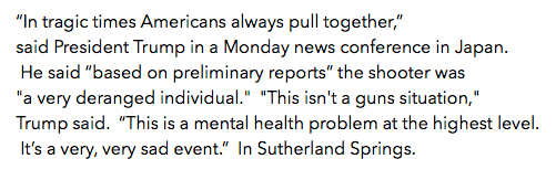 sucks up to protect the NRA on the Sutherland Springs shooting.