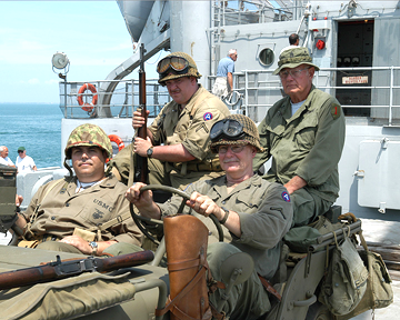 There were live gun demonstrations by the re-enactors of the troop weaponry used in those days, followed by a solemn wreath ceremony near the Skyway Bridge in memory of those who gave the ultimate price for freedom. The ceremony included a 21 gun salute by the re-enactors, a beautiful poem and invocation read by the ships Chaplain, and the placement of the wreath in the sea.