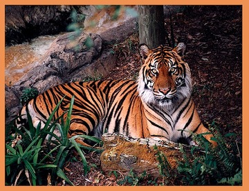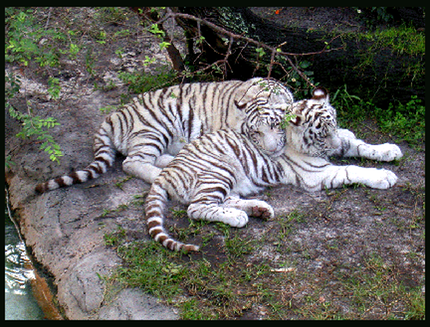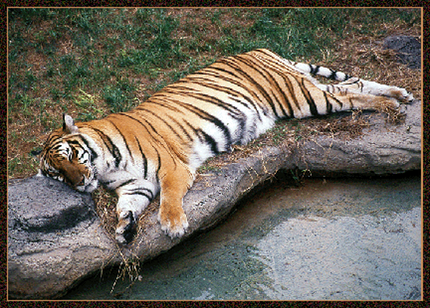 The cub above (picturized in Photoshop) is the same animal in the large mat near the end of this article. I was there their first day out when the three cubs were shown to the public. Tigers have always been at the top of the Photographic "food chain".