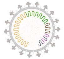 The virus genome is packed inside an envelope that contains proteins, including the Spike protein.