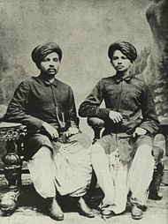 Gandhi (right) with his eldest brother Laxmidas in 1886.