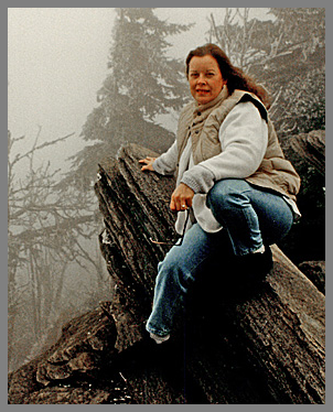 Conte in the smokies in the Cherokee tribal lands after having breakfast with one of their chiefs… Looking north standing at the edge of the cliff, her attention was drawn to a gnarly tree barely grasping with its roots to the