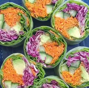 Basically, nearly anything that you love in a salad can translate into a roll. Start with a wrap - think collard greens, lettuce or even large steamed broccoli leaves, nori or rice paper. Then, go crazy with the veggies. However, you'll likely need to cut the veggies smaller than you would for a salad. Grated or matchstick-style carrots, radishes, cucumber, peppers and cabbage add color and crunch. Roasted beets, sweet potatoes, squash and mushrooms bring depth.