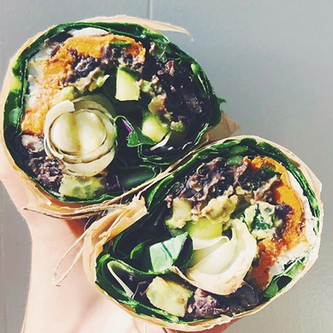 This is more of a collard wrap than a roll but the featured ingredients work for both. Make the most of leftover roasted sweet potatoes and add black beans, thinly sliced cucumber, chopped endive, avocado slices and microgreens or sprouts. This is rounded out with homemade vegan "parmesan" and a store-bought cashew herb garlic cheese.