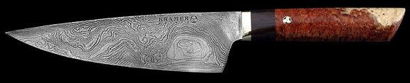 The Top Of The Line — BOB KRAMER KNIVES — The celebrated American knife-smith Bob Kramer sums it up. I gleaned this from his website because his words are what it is and what he is about. Perfection, in performance, style, function and artistry. Bob's knives are a combination of best of art and meticulous craftsmanship producing one of the finest products made. I have and could afford only one Kramer. I love that knife but it is used on special occasions unfortunately not too many because it is not only a knife , it is art in knife making. At 2500 dollars it sits in the safe. I fI had the holy grail it would sit alongside of it.