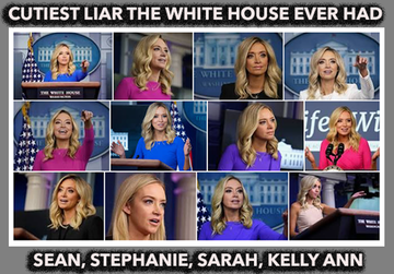 Congratulations to Kayleigh McEnany now reporting and distorting for FOX news and we learned in another former job of hers she earned her lying skills, working for Mike Huckabee, another member of the “ Schmucks with Earflaps Club. She is solid in the dark side, no one I know even wants her skills… no validation.