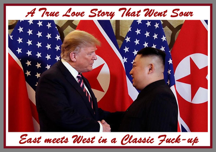 Lots Of Promises, Love Letters Lots Of Photo-Ops, And Grand Standing Images Regardless It Turned Into A Magnum Sized Expensive Bullsh*T Session And No Treaty… Kim Jung Un Beat Three Presidents, T-Rump Was A Lapdog Layover Loser… And Kim Laughs At Him…