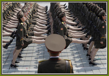 These are the famed North Korean Goose-steppers, Rocket-man’s personal show group just back from a world Communist tour of incredible precision and graceful coordination. They easily out-shined groups from Africa, China, South America, Mesopotamia, Iran, and the combined Syrian/Lebanon Hezbollah team.