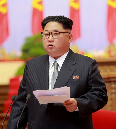 This photo, upper right, taken on May 6, 2016, and released on May 7 by North Korea’s official Korean Central News Agency (KCNA) shows North Korean leader Kim Jong Un making an opening speech during the 7th Workers Party Congress.