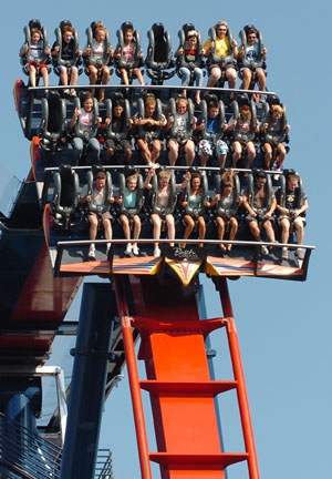 Did you ever wonder after the big exciting trip up the hill, when you see the next step if this didn't require a little more thinking? Because you are committed, no turning back now, just a bunch of ups and downs, a few cuban eights and barrel rolls and you think its over, till the kids say, "Lets do it again daddy". "You kids go by yourself" as you surmise if that Taco breakfast Burrito with extra hot sauce you had for breakfast was a good choice.