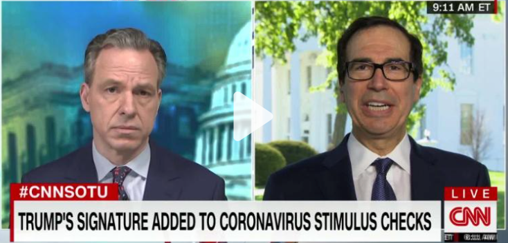 "We did put the President's name on the check. That was my idea. He is the President and I think it’s a terrific symbol to the American public,” Mnuchin told CNN's Jake Tapper on "State of the Union."