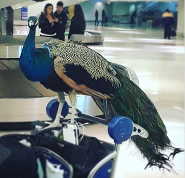 ‘My therapy animal is inspirational' Had it made it onto the plane, the peacock would have joined a flock of jet-set birds.