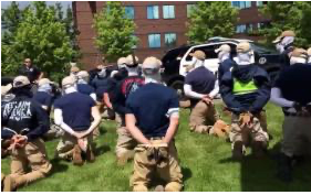 - The large group was seen piling into a U-Haul at a hotel with riot gear and were later pulled over and arrested, Coeur d'Alene Police Chief Lee White said during a news conference.