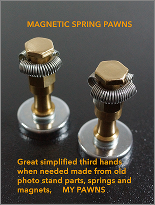 I found a few of these (3) Pakistani, India, China, what ever cheapies for a ridiculous price under ten dollars so I went to my other source, my junky garage and started fiddling and found a few other parts, springs mounts and a set of #3 bastard files and went to straightening crooked and unfinished edges and squaring surfaces so the clamp on accessories will fit flush. In no time I had all three done…