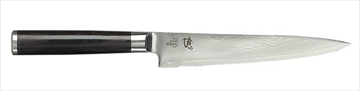 Extreme Edge — Because of the hard, premium steel from which Shun cutlery is made, the blades can be thinner, lighter, and sharper. A thinner edge cuts more easily by putting less stress on the edge—so fewer strokes do the job. Thinner edges are easier to control as well, making cutting smoother and, once again, relieving stress on the edge.