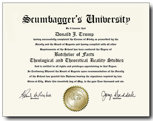It is not a college or a four year term year program resulting in a PHD in Religion called a Doctor of Theology. It is a Doctor of Doo-Doo. To get a degree or have one made up, requires little other than a credit card or checking account. It’s easy and fake…it is not academia, no personal sacrifice needed…no hundred mile treks in the desert, no living in monasteries, or spending months feeding the poor, you can do it all from your recliner and laptop.