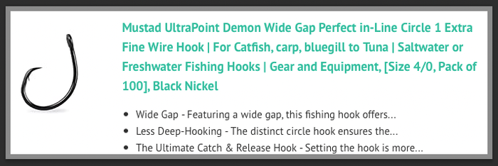 🐬 In-Line or Offset Circle Hooks — Offset circle hooks defeat the purpose of a conservation-crafted hook because of their tendency to lodge deep in the throat of a fish.