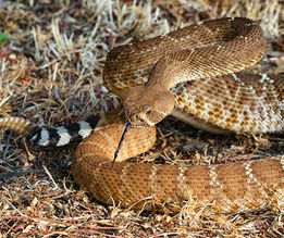This is a very small rattlesnake averaging 15 to 22 inches long. Their rattle is so small it sounds like an insect buzzing. They are gray with colored blotches running down the back. Its bite is painful but typically not fatal. This snake is responsible for more snake bites in Florida than any other venomous snake. Children should definitely be educated about this animal; because of its small size, a child (or event adult) may believe this to be a “harmless" snake.