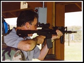 🔘 One picture here is significant, the guy in the grey shirt shooting a prototype M-16 Shorty with picatinny rails, forward assist, small scope, collapse stock is me.